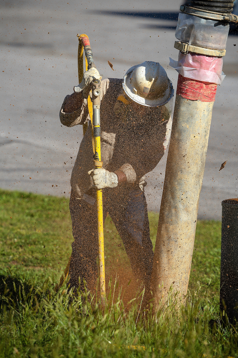 high-pressure water or air to break up the ground, followed by an industrial strength vacuum to collect the debris.